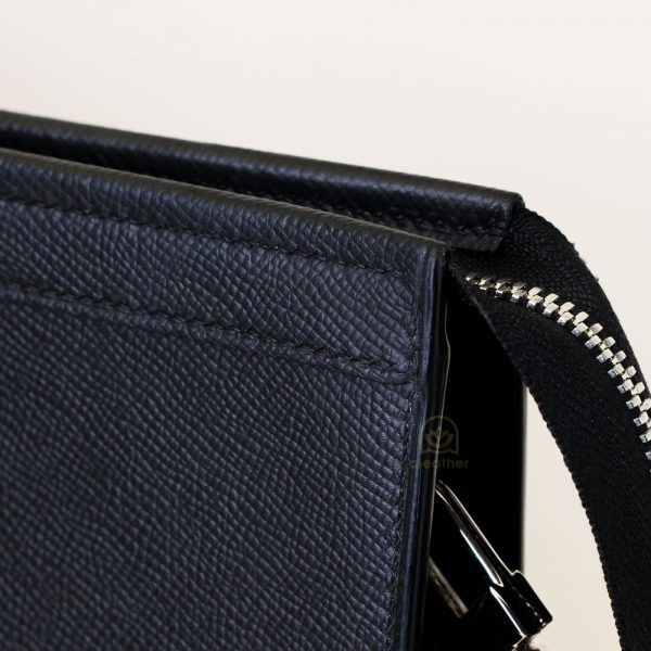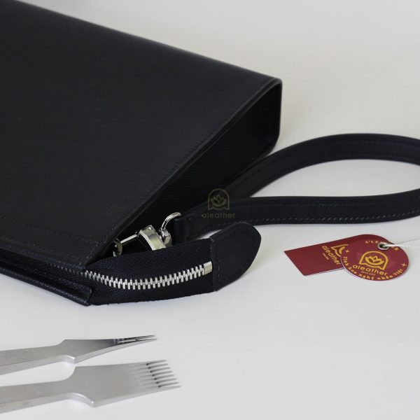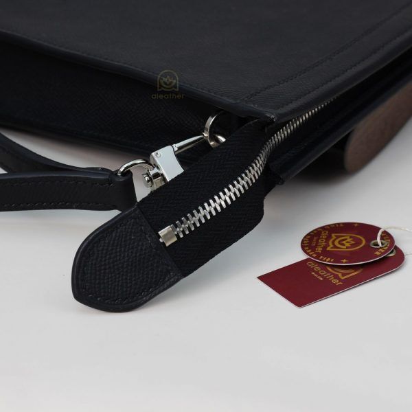 【コンセプト】- Concept ミニマリズムを追求した、洗練されたシルエット。上質なフランス製牛革の質感を最大限に活かすため、あえて装飾を排したデザインに仕上げました。漆黒のボディに銀色に輝くファスナーが、都会的でシャープな印象を与えます。ビジネスからフォーマルまで、これひとつでスタイルが完成する究極の定番です