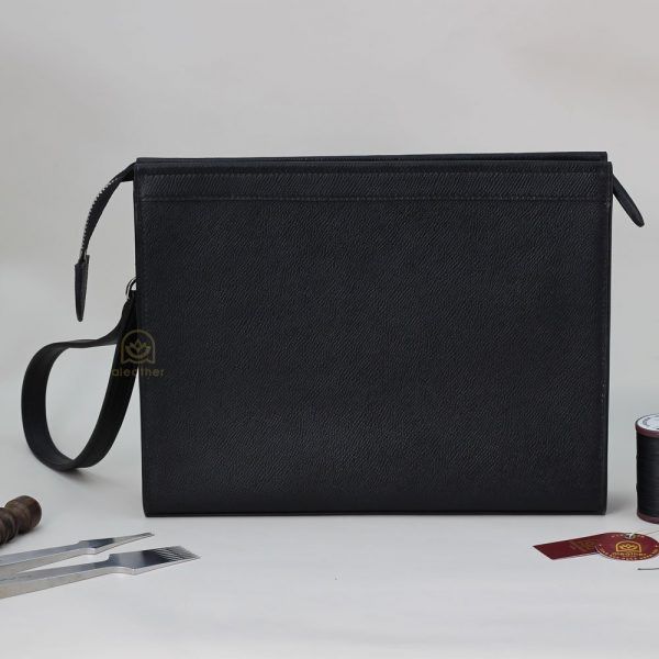 「潮風」- フレンチレザー・スリムクラッチバッグ (ストラップ付き)