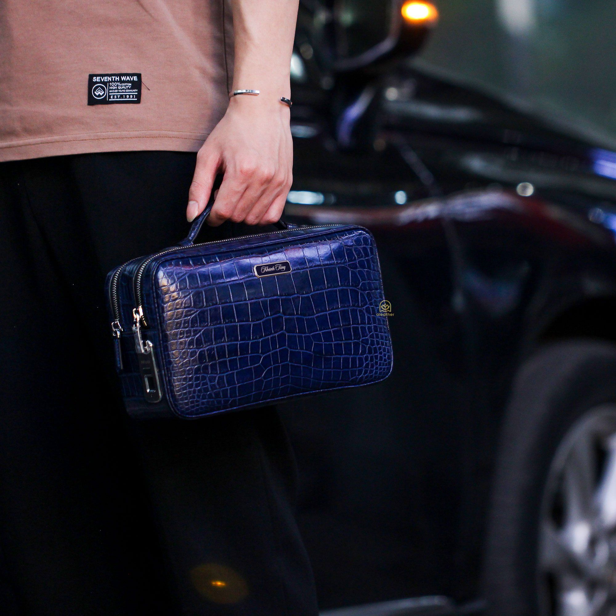【A’leather】大人の品格を引き立てる、 「フランス産最高級ブラッククロコダイル」2室式クラッチバッグ