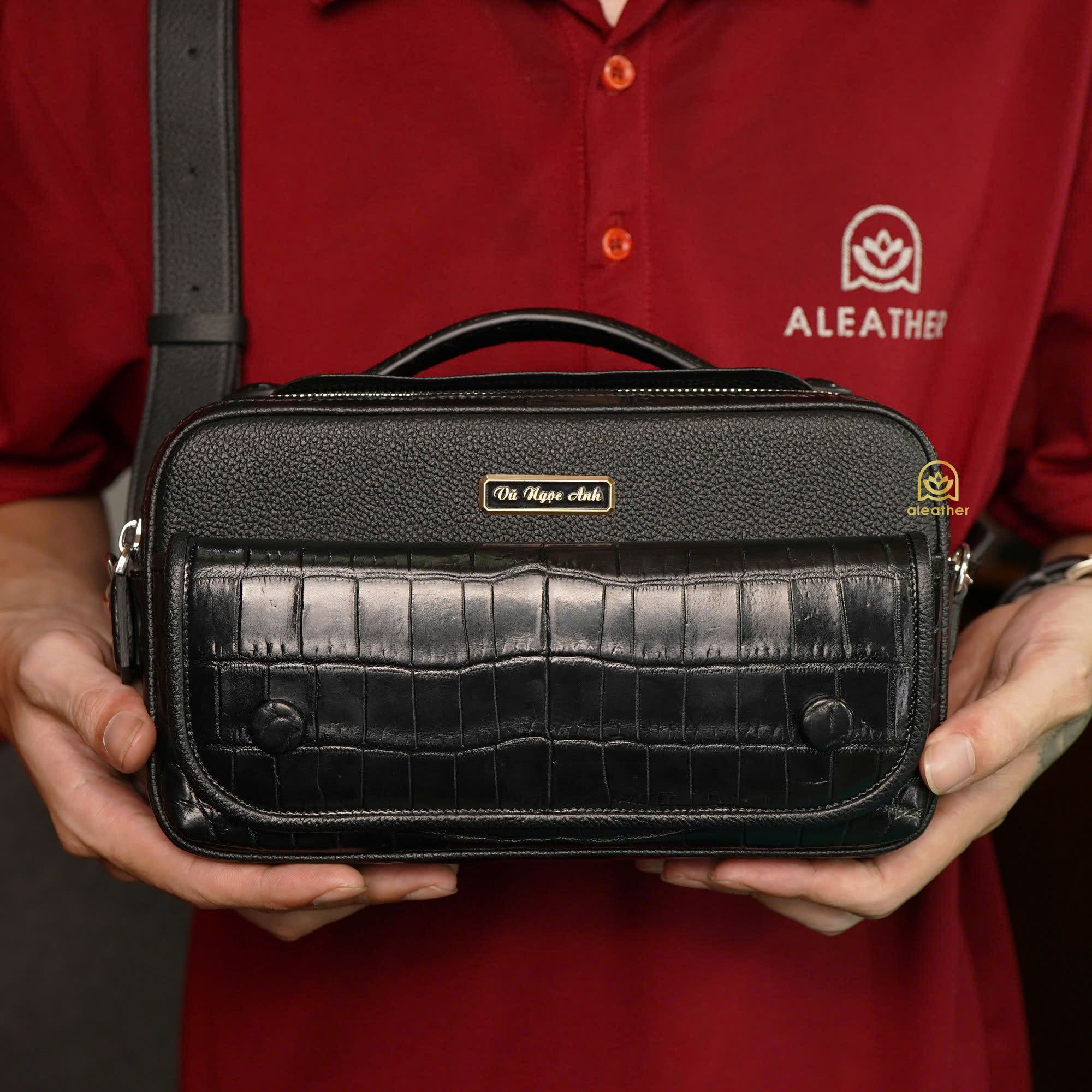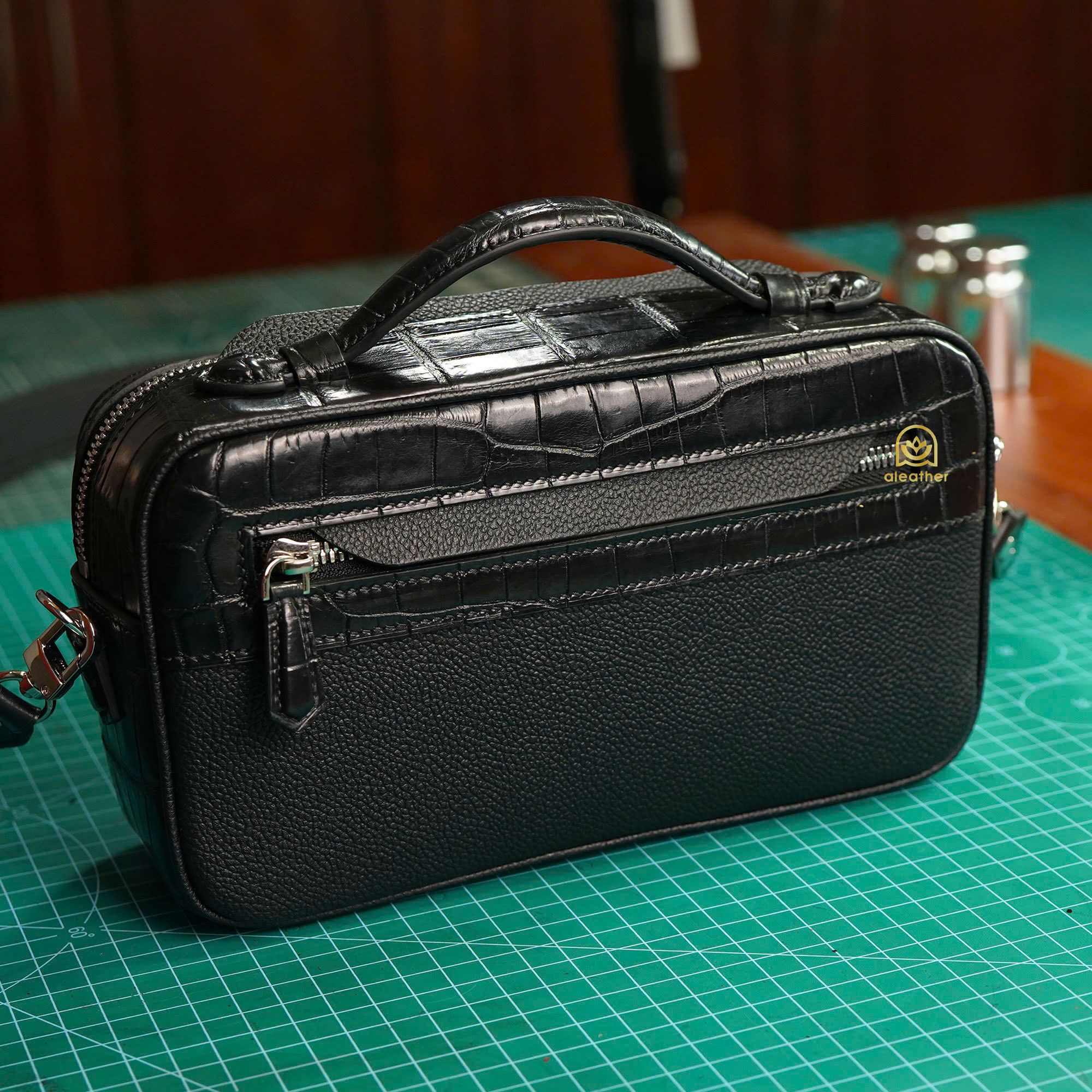 【A’leather】ONYX Black / ハク・ギョク:至高の稀少クロコダイルレザー製「2室式クラッチバッグ」