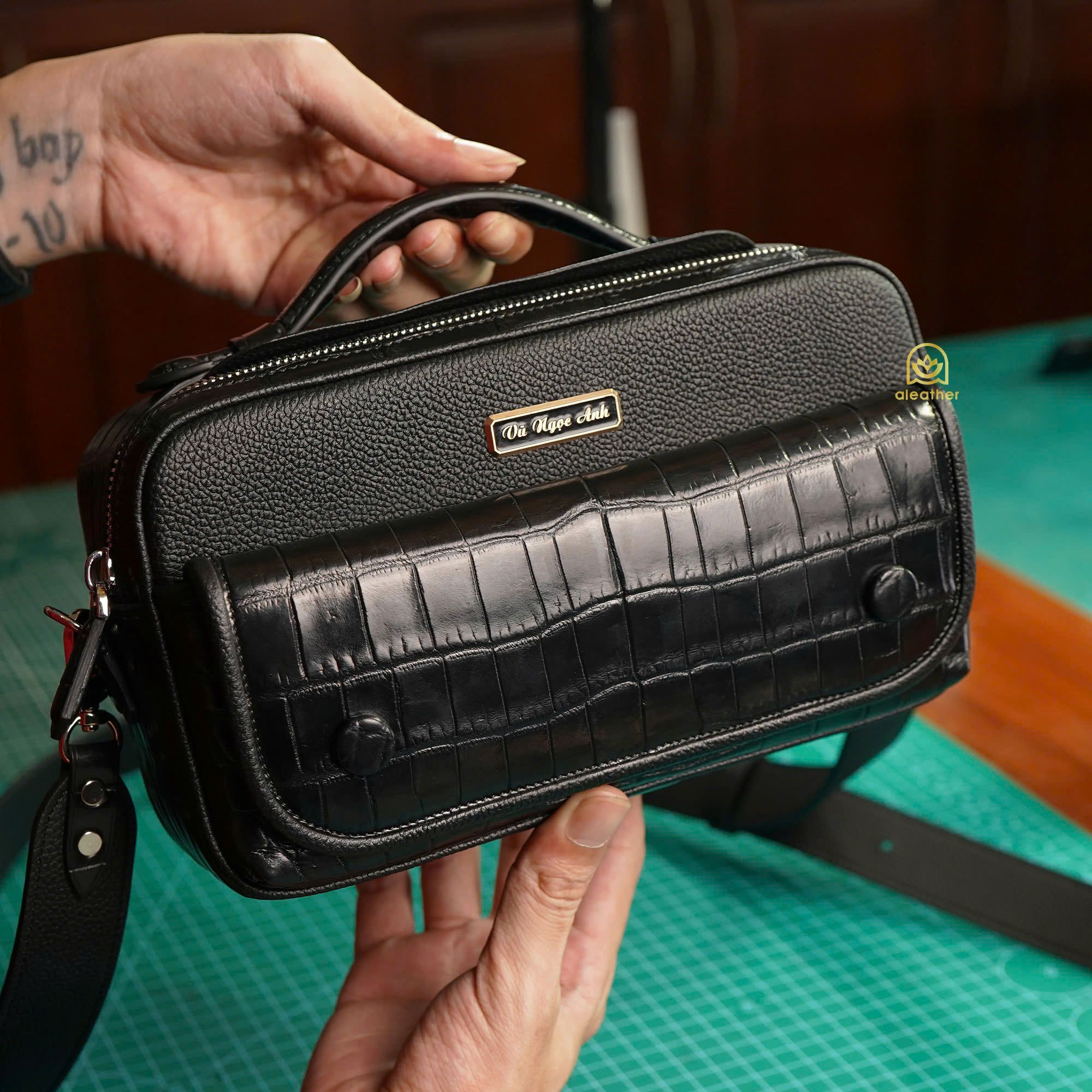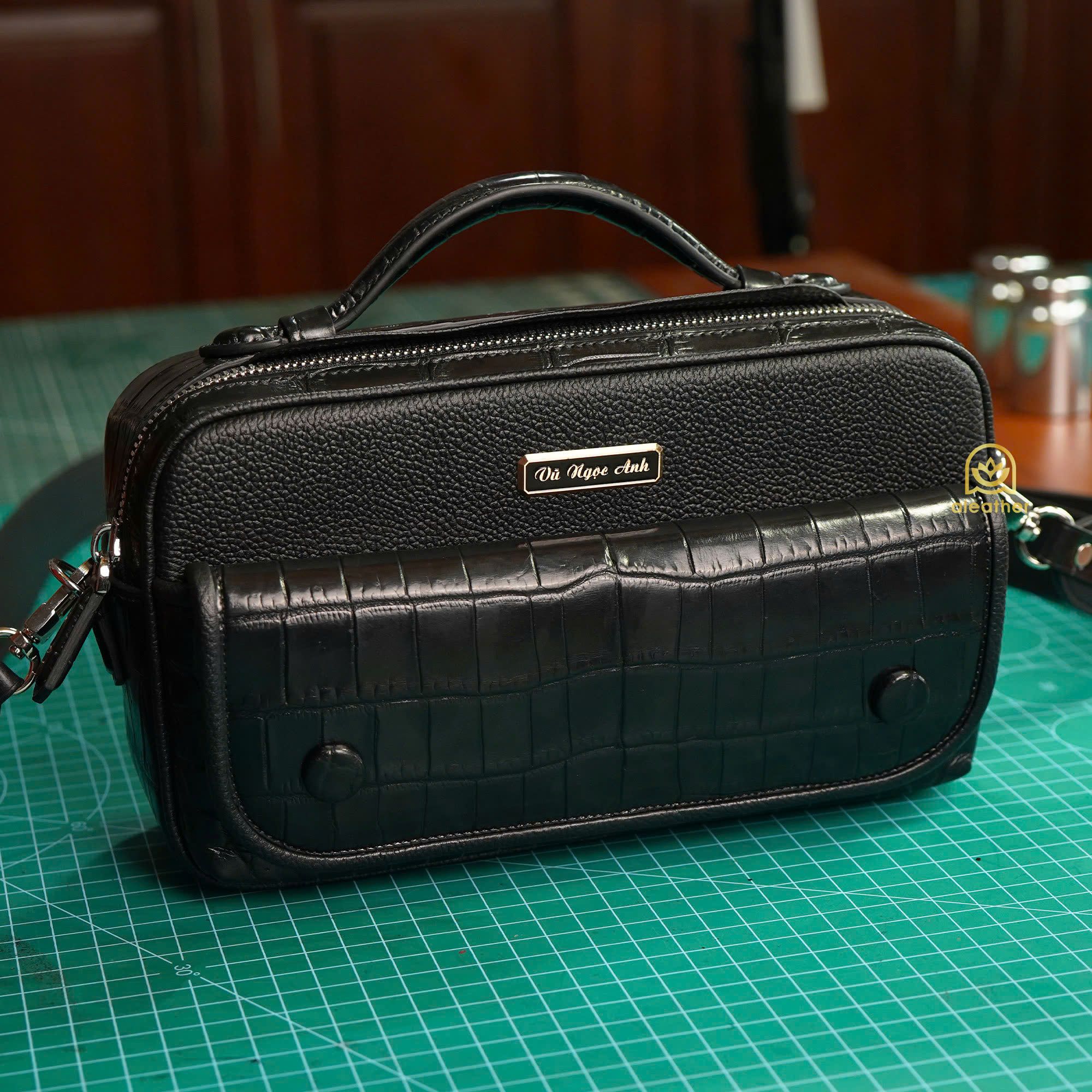 こちらの作品は、A’leather が誇る至高の稀少クロコダイルレザーを使用し、深みのある漆黒に染め上げた特別な2室式クラッチバッグ「ハク・ギョク」です。