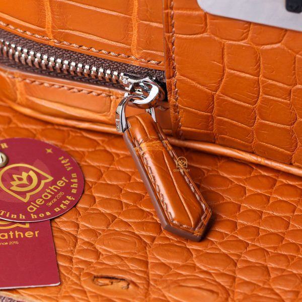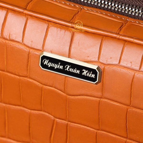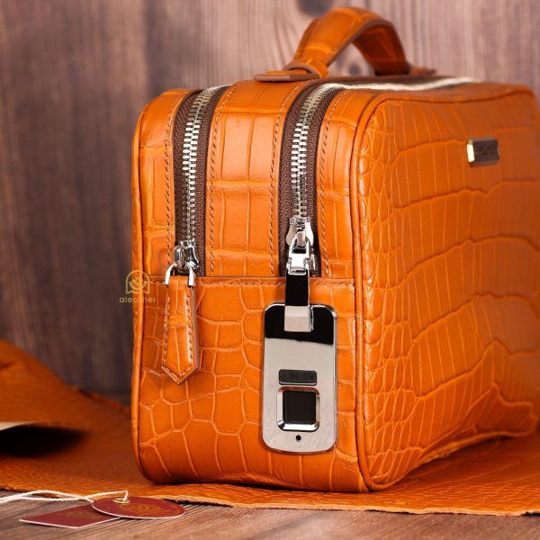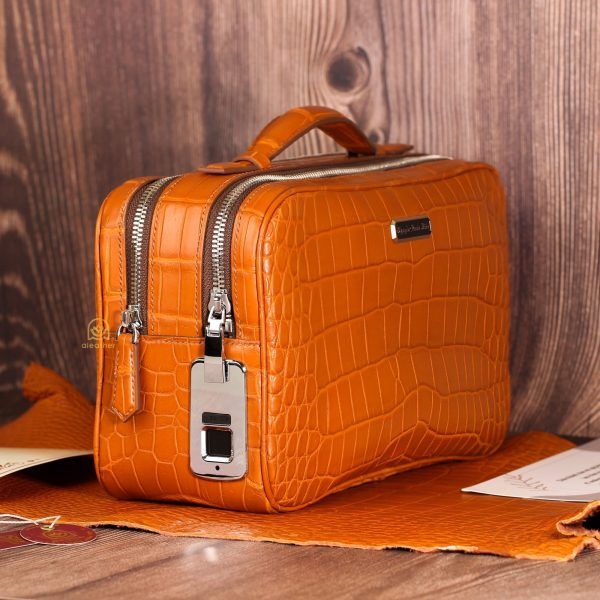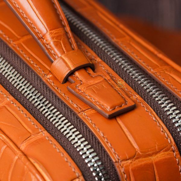 こちらの作品は、A’leather が誇る稀少な『宇宙色オレンジ』クロコダイルレザーを贅沢に仕立てた特別な2室式クラッチバッグです。
