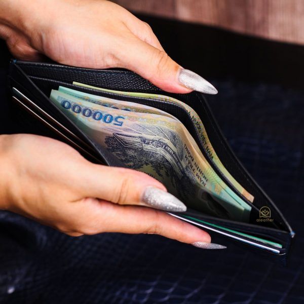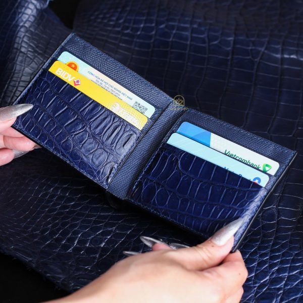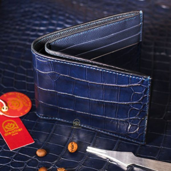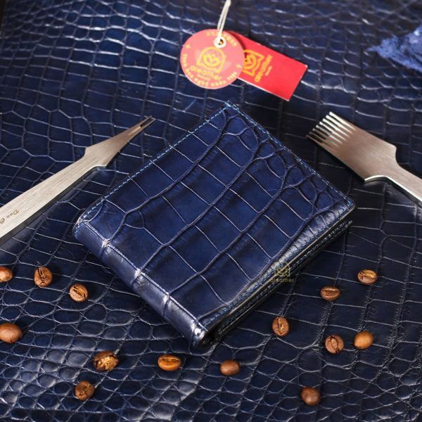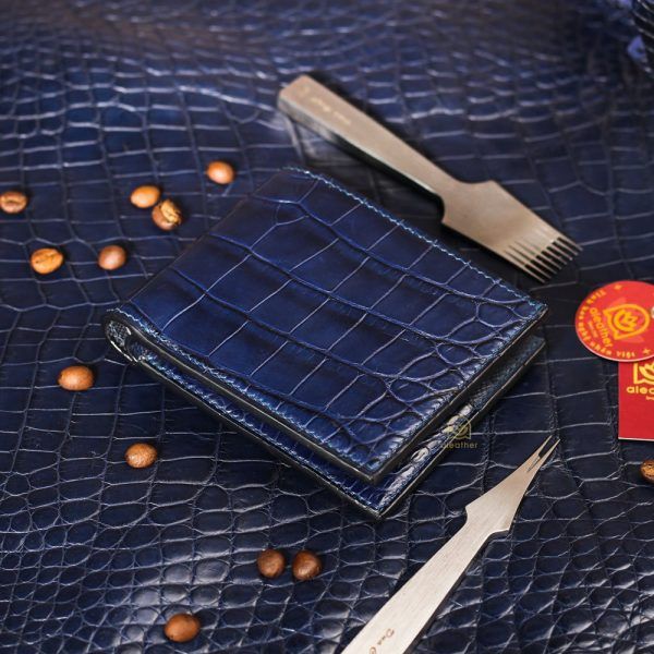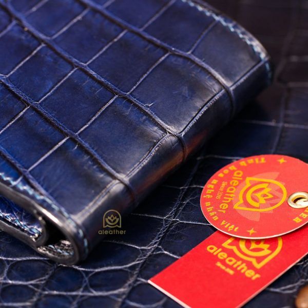 【A’leather】ロイヤル・オールクロコ:稀少な腹革使用の、ネイビー・ミニ二つ折り財布