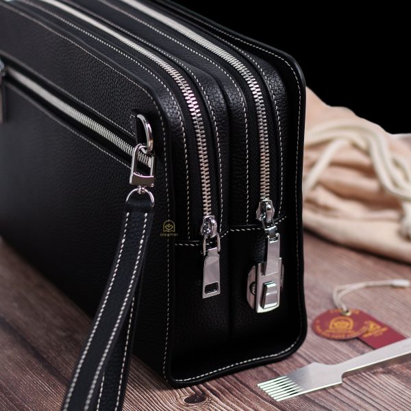 「宝物庫」- フレンチレザー・ダブルジップ クラッチバッグ (ブラウン)