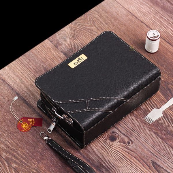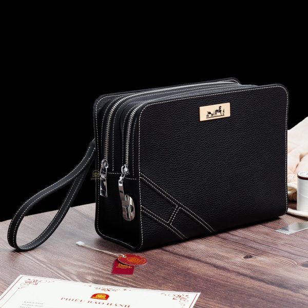 【コンセプト】- Concept フランスが誇る名門タンナーの「トゴレザー」を贅沢に使用。美しいシボ感(表面の凹凸)と、型崩れしにくい強靭さを兼ね備えた逸品です。フロントに施された「H」のステッチは、熟練職人が一針ずつ魂を込めて縫い上げた手仕事の証。2層の収納スペースが、機能性と圧倒的な品格を両立させます。